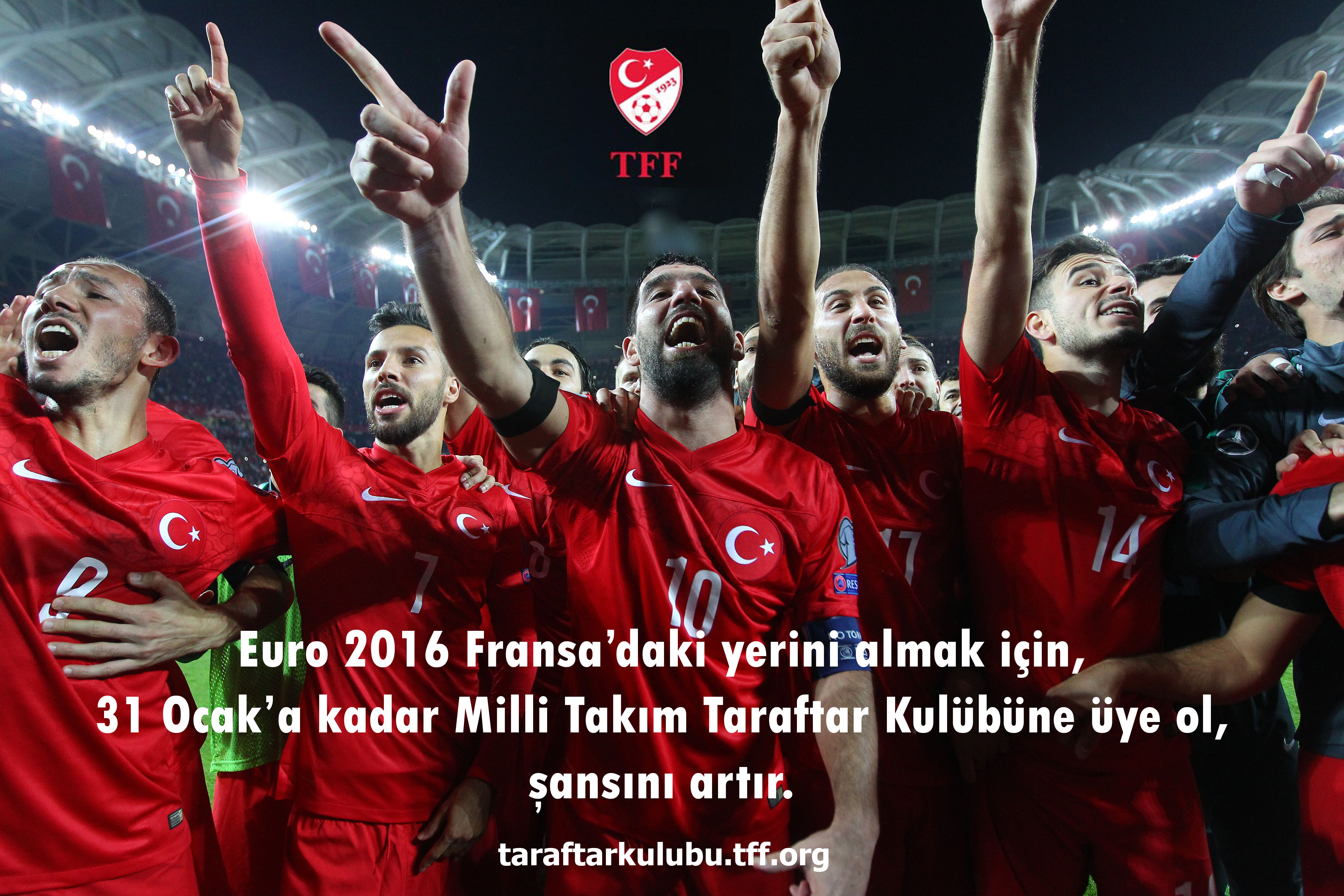 UEFA EURO 2016’da A Milli Takımımızın yanında olmak, onları tribünlerde desteklemek ve milyonlarca kişinin yarıştığı bilet kuyruğunda şansınızı arttırmanın yolu Milli Takım Taraftar Kulübüne üye olmaktan geçiyor. En geç 31 Ocak 2016 tarihine kadar Milli Takım Taraftar Kulübüne ön kayıt yaptırın, EURO 2016’ya bir adım daha yaklaşın .