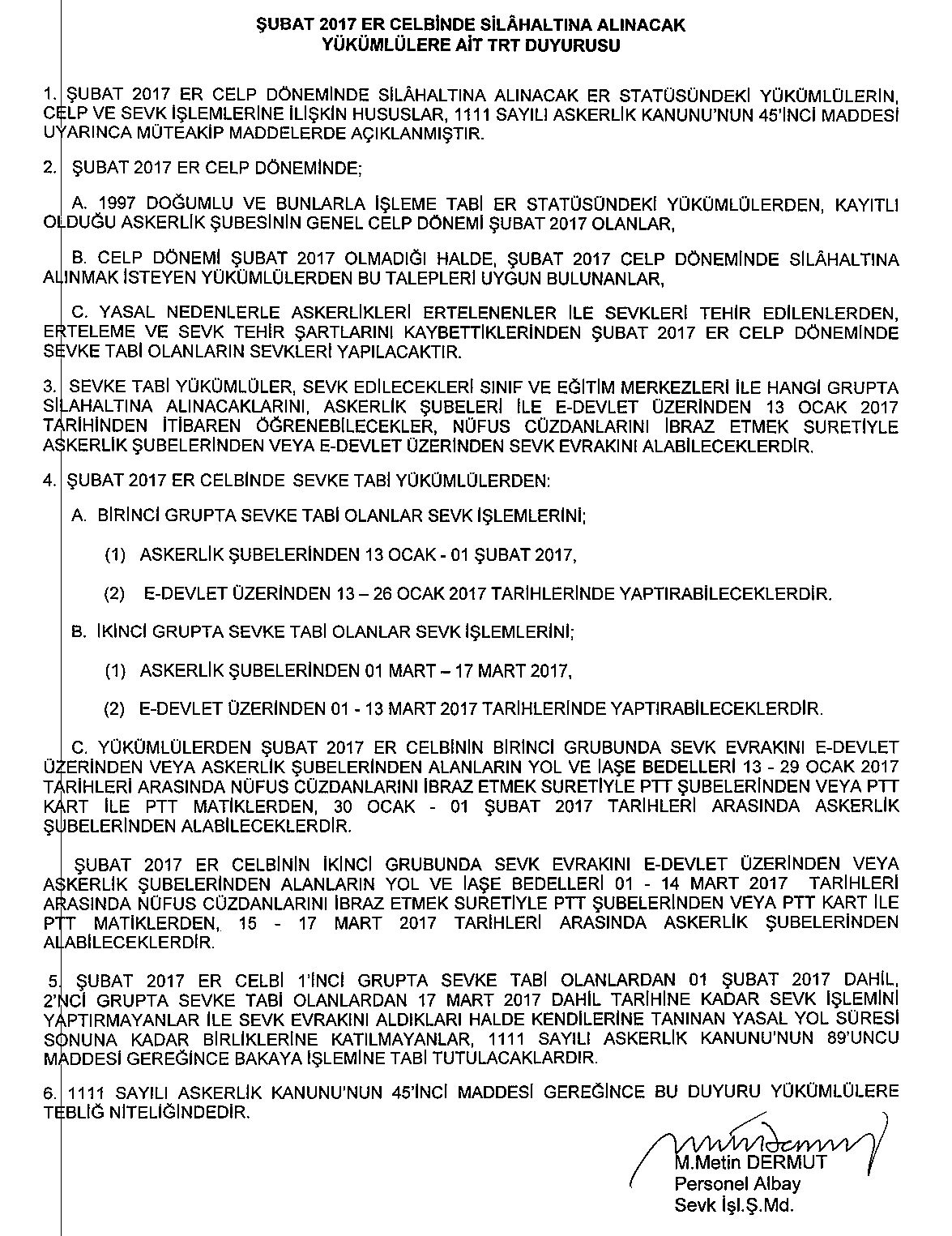 Uzun Dönem Askerlik TRT Duyuruları
